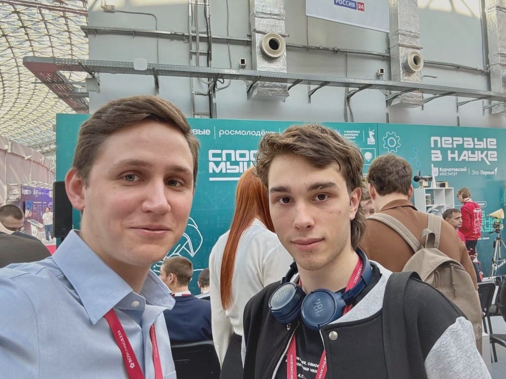 Поздравляем учащегося Университетской гимназии МГУ, участника проекта нашей лаборатории «Физика живых систем» Тимофея Мошкина с отбором на юбилейный Конгресс молодых ученых, который стартовал на ФТ «Сириус». Тимофей представляет биотехнологический проект о растительных вирусах в качестве перспективных вакцин-адьювантах по данным атомно-силовой микроскопии. На фото Тимофей вместе с аспирантом группы Тимофеем Советниковым, который тоже участвует в работе КМУ в качестве получателя президентской стипендии для аспирантов и адъюнктов.